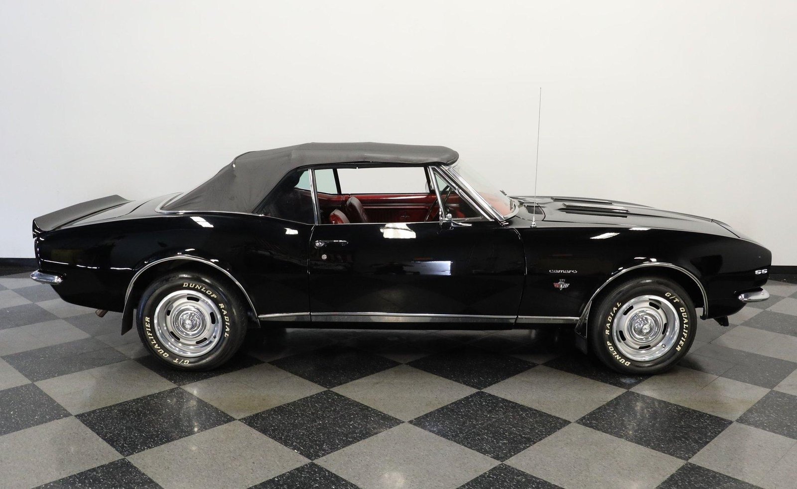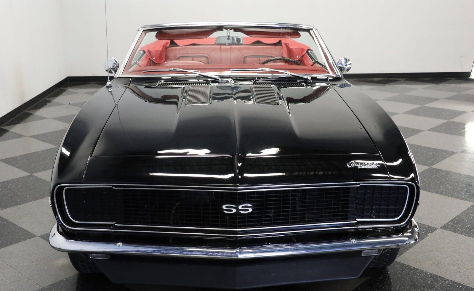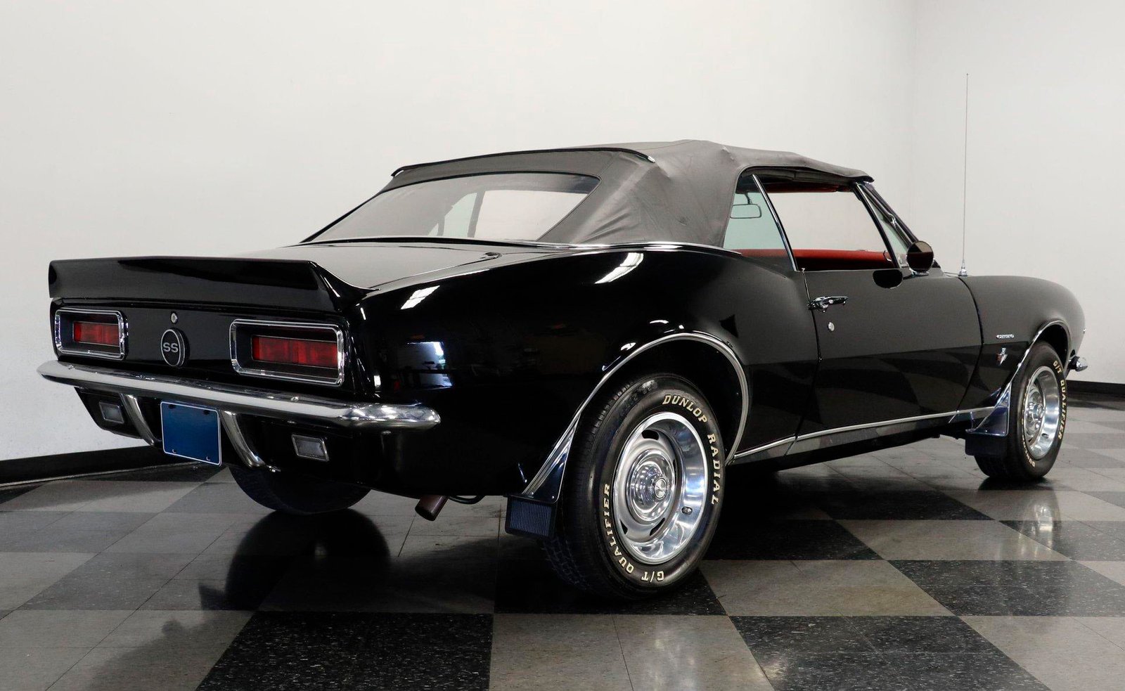 A stunning 1967 Chevrolet Camaro RS Convertible finished in Tuxedo Black with red interior — powered by a year-correct 327 V8 and 4-speed manual, combining authentic first-gen style with true American muscle performance.