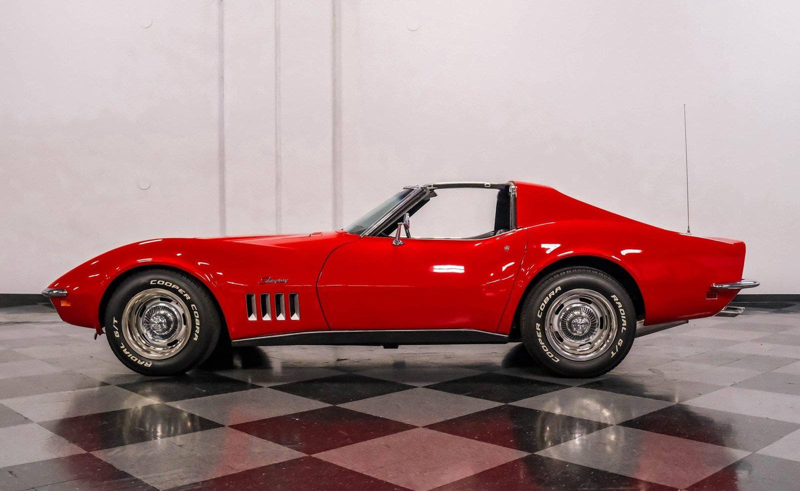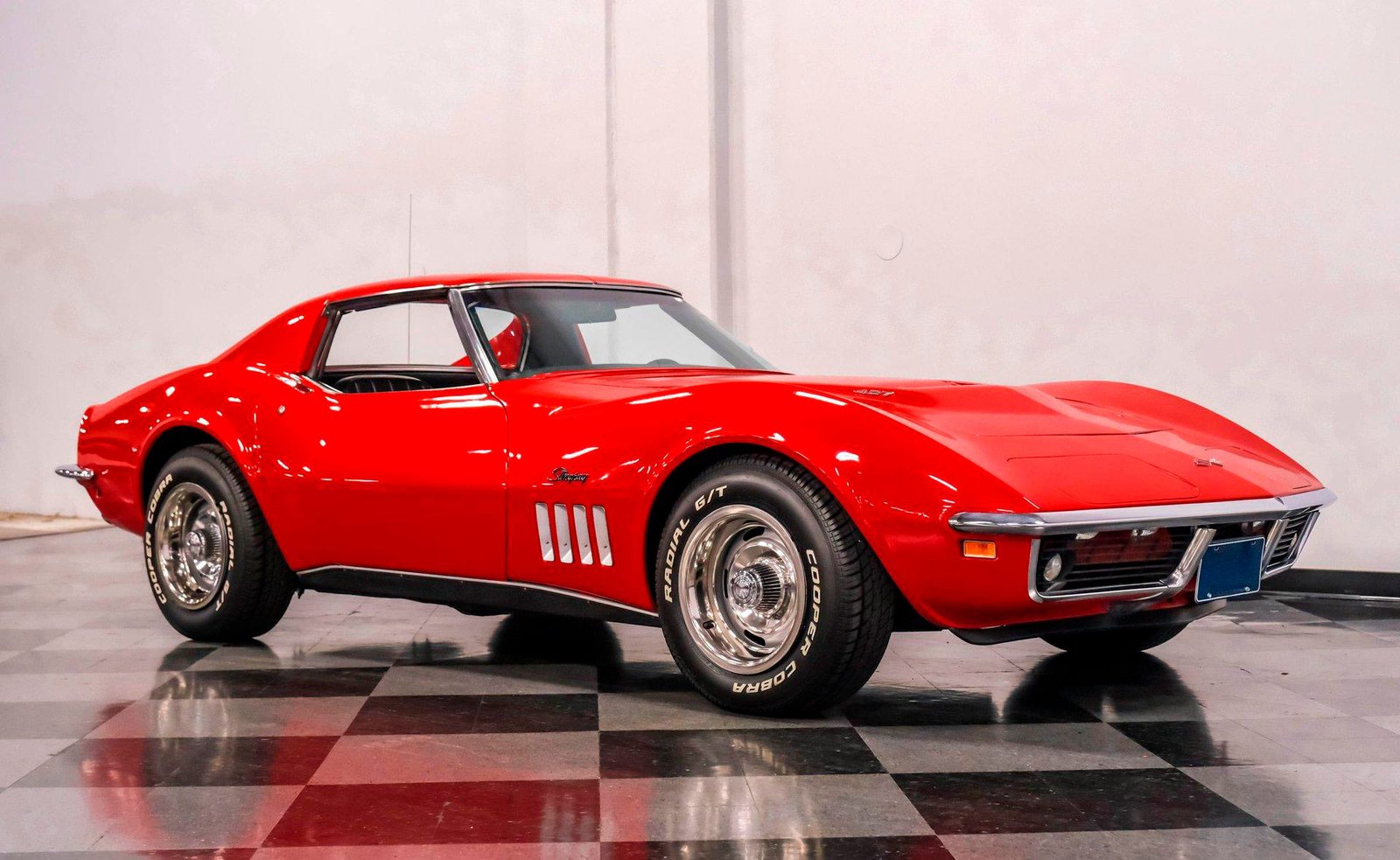 A stunning numbers-matching 1969 Chevrolet Corvette L36 finished in factory-correct Monza Red — powered by a 427 big block V8 and 4-speed manual, with air conditioning, T-tops, and original smog equipment intact.