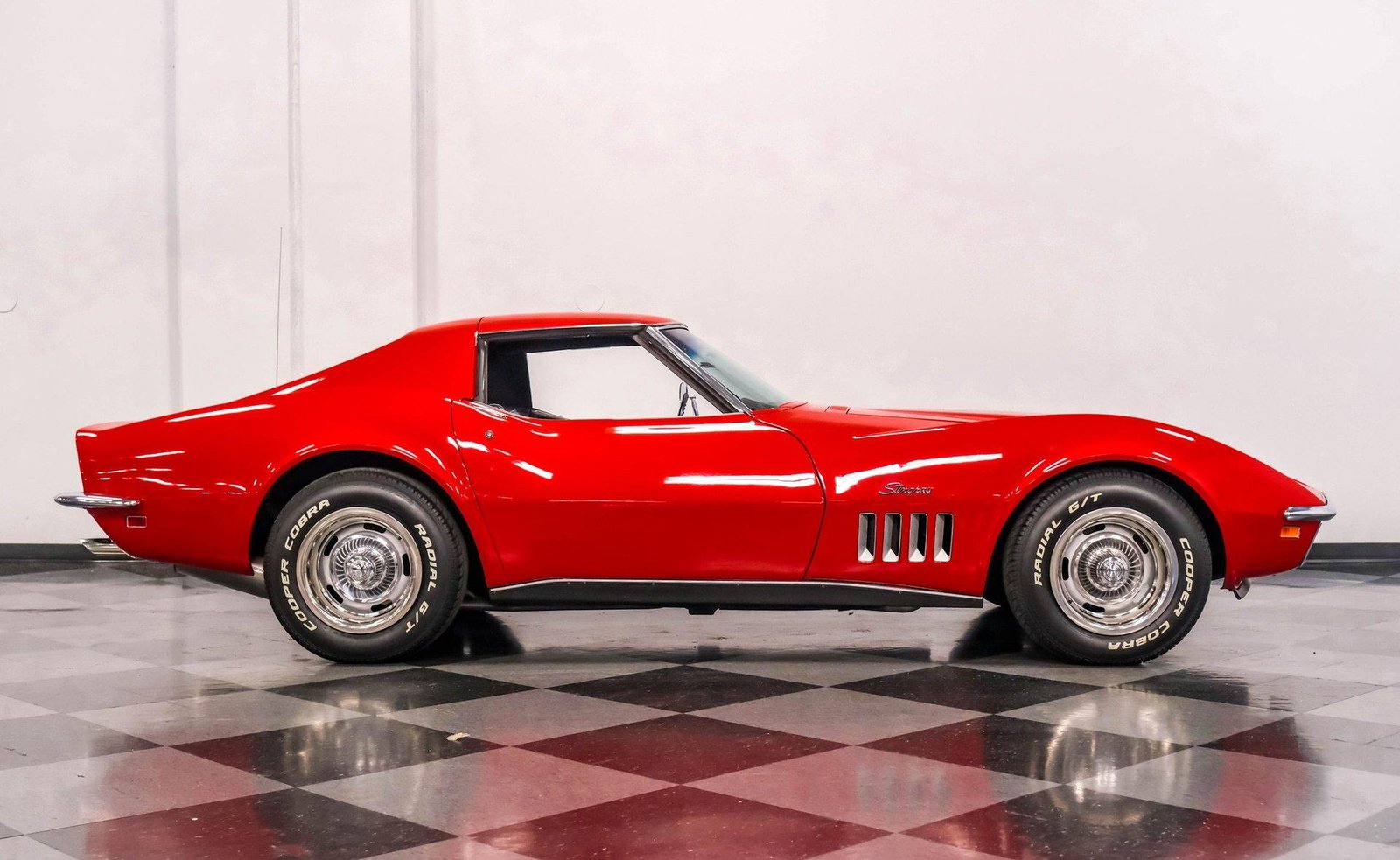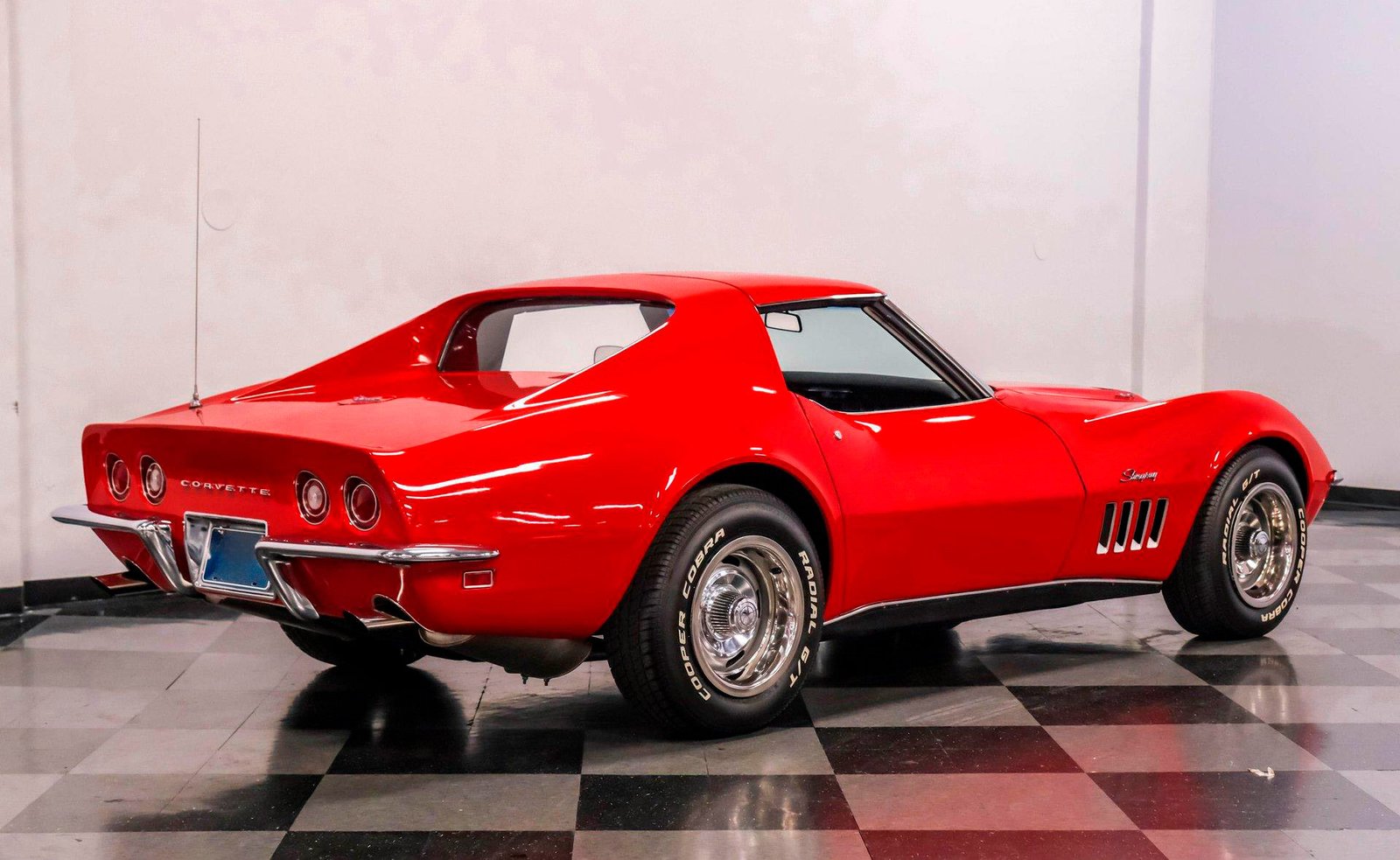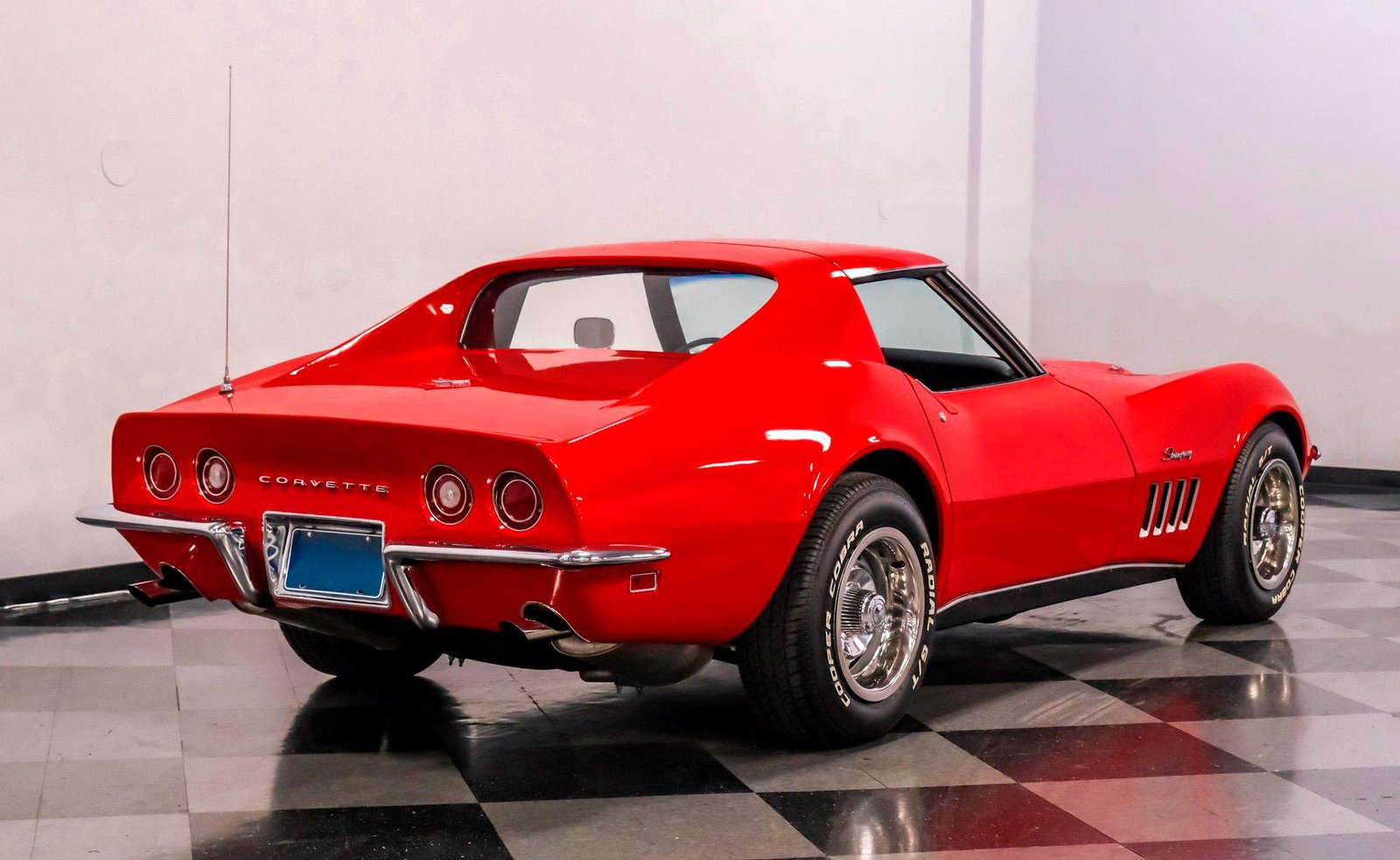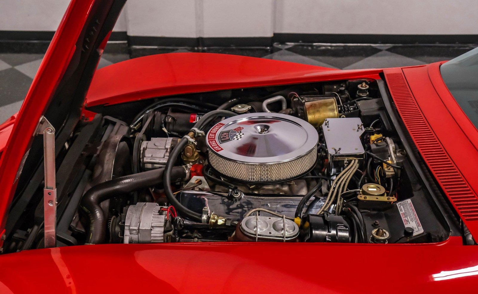 Exterior: Factory-correct Monza Red exterior, removable T-tops with pop-out rear glass, chrome bumpers, signature C3 fender gills, and rally wheels completing its unmistakable Corvette stance.